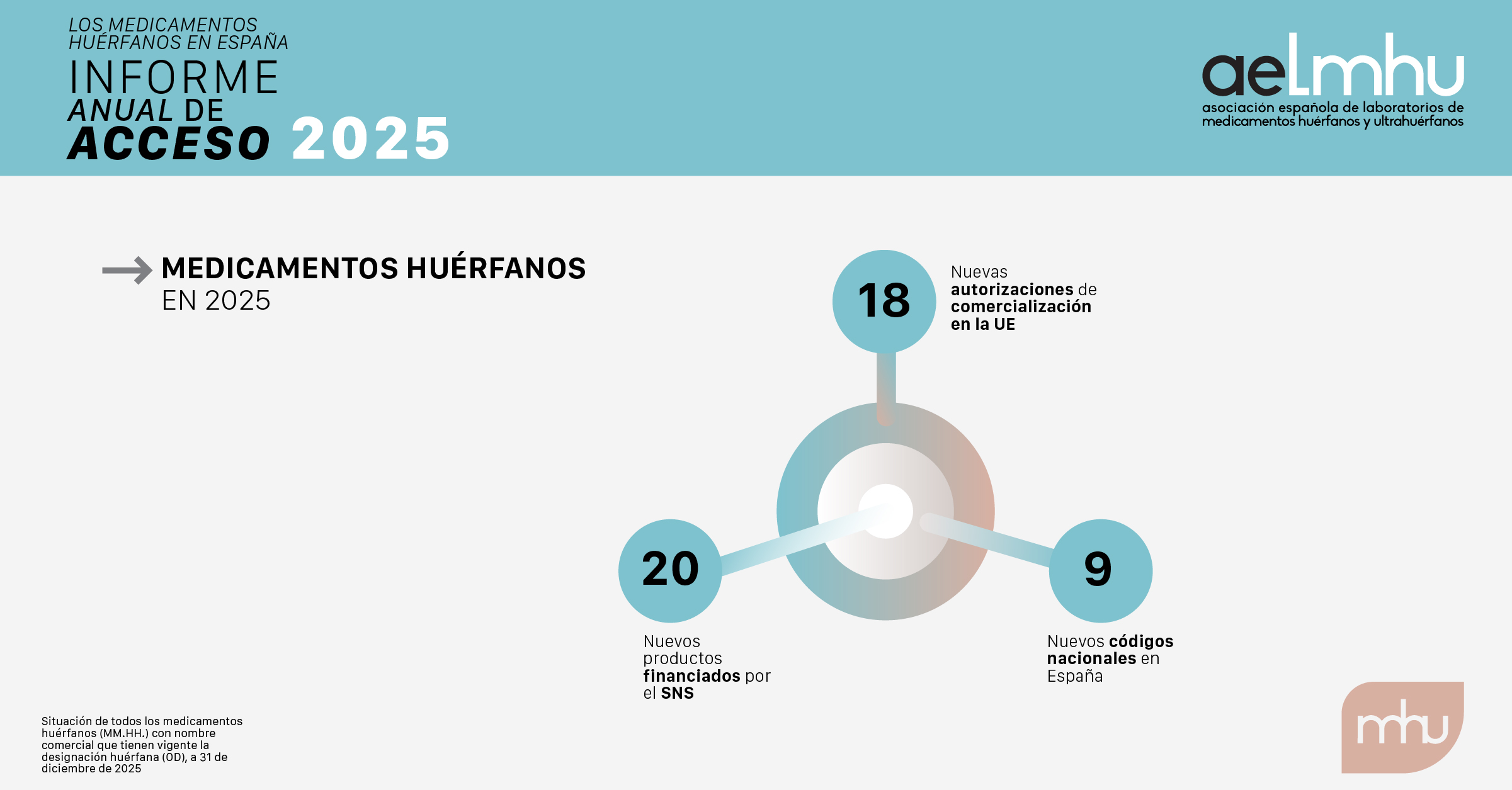 España financió un total de 20 medicamentos huérfanos (MM.HH.) para enfermedades raras durante 2025, lo que supone tres más que el año anterior, según los resultados del Informe Anual de Acceso a los Medicamentos Huérfanos en España 2025, publicado este lunes por la Asociación Española de Laboratorios de Medicamentos Huérfanos y Ultrahuérfanos (AELMHU).