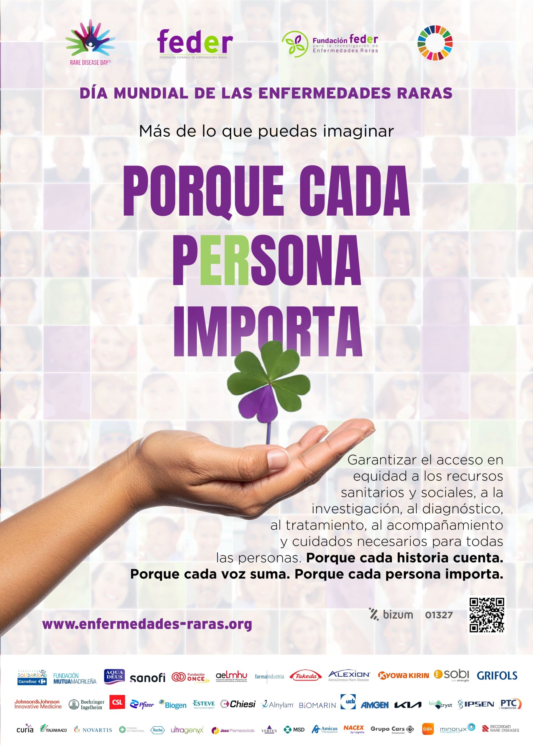 ‘Porque cada pERsona importa’. Ese es el lema de la Federación Española de Enfermedades Raras (FEDER) para su campaña por el Día Mundial de las Enfermedades Raras, que se conmemora cada 28 de febrero, y que este año vuelve a poner el foco en tres pilares esenciales para el movimiento asociativo: la investigación, el diagnóstico y el acceso a los tratamientos.